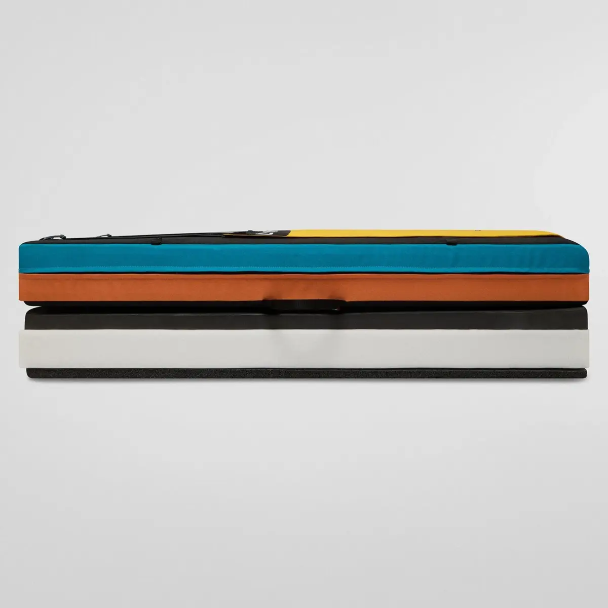 La colchoneta Alpagota Crash Pad ha sido diseñada para ofrecerle comodidad en la aproximación y seguridad cuando supera sus límites en la roca. Su construcción de triple capa de espuma, sometida a intensas pruebas, incluye una capa de espuma de célula cerrada de alta densidad de 3 cm para dispersar la fuerza del impacto. La capa intermedia de espuma de PU de 8 cm, que absorbe los impactos, protege contra lesiones y esguinces de tobillo, y una capa de poliamida reciclada de 2 cm se amolda a los terrenos irregulares para proteger la colchoneta. Además, la funda de nailon 1200d garantiza la máxima durabilidad para innumerables aventuras de búlder. Las correas acolchadas para los hombros y el cinturón, que distribuyen el peso, la hacen cómoda de transportar, lo que le permite ahorrar energía para trabajar los movimientos de su proyecto. También hay una gran solapa delantera para guardar una segunda colchoneta. Con la máxima seguridad y protección contra caídas mientras intentas dinámicos y topouts, prepárate para superar tus límites en tu próximo problema de búlder.