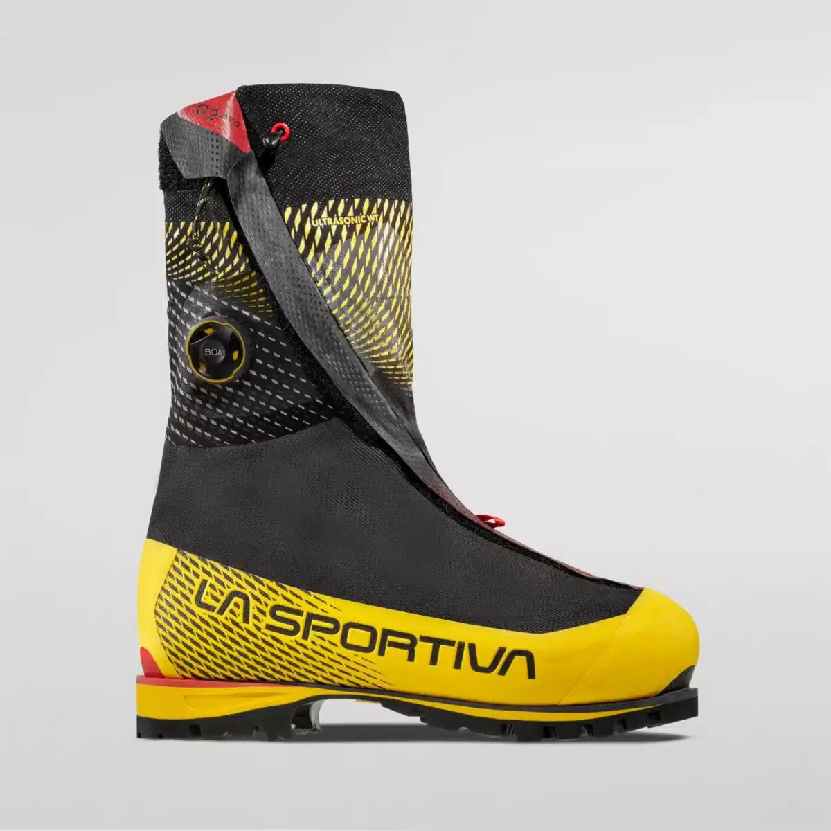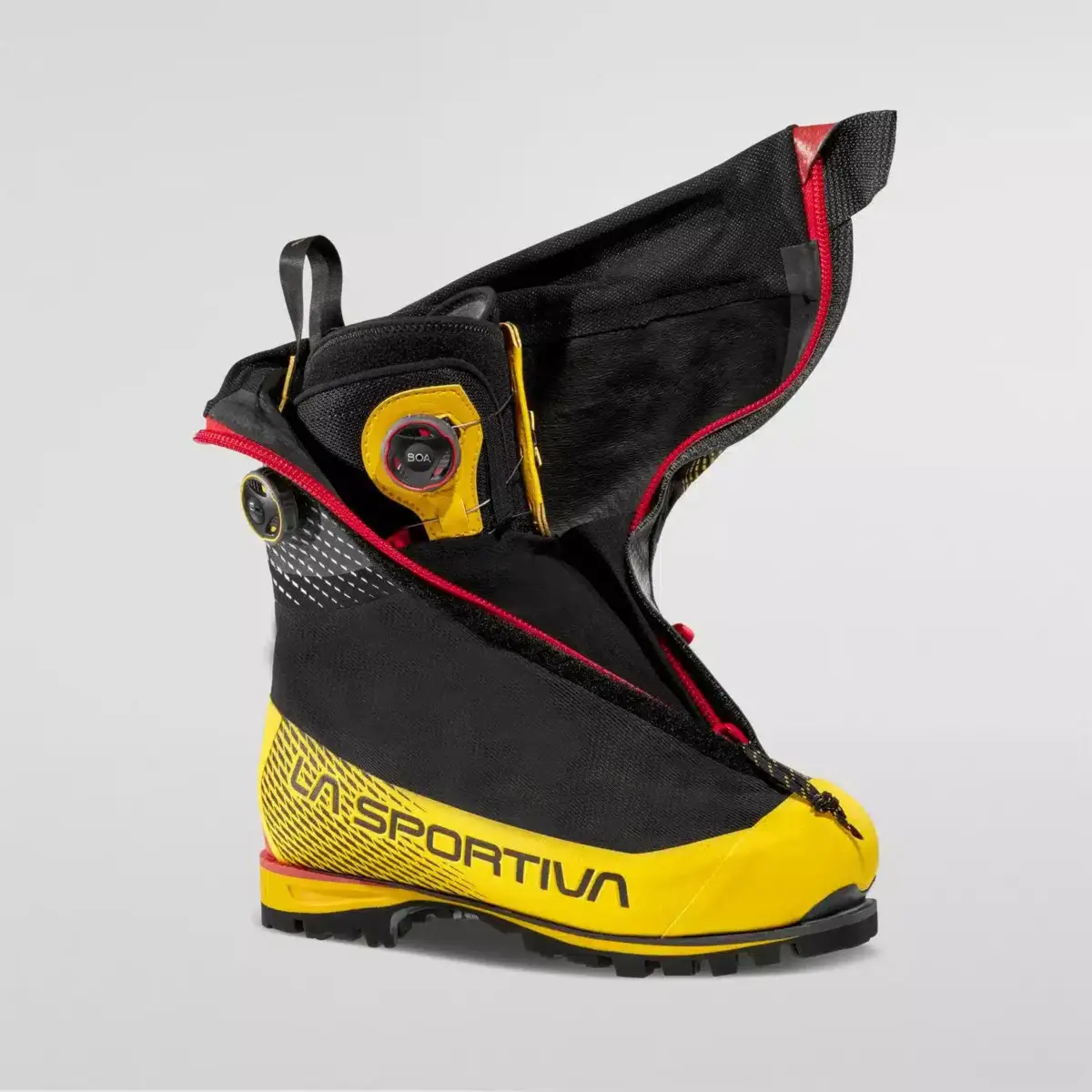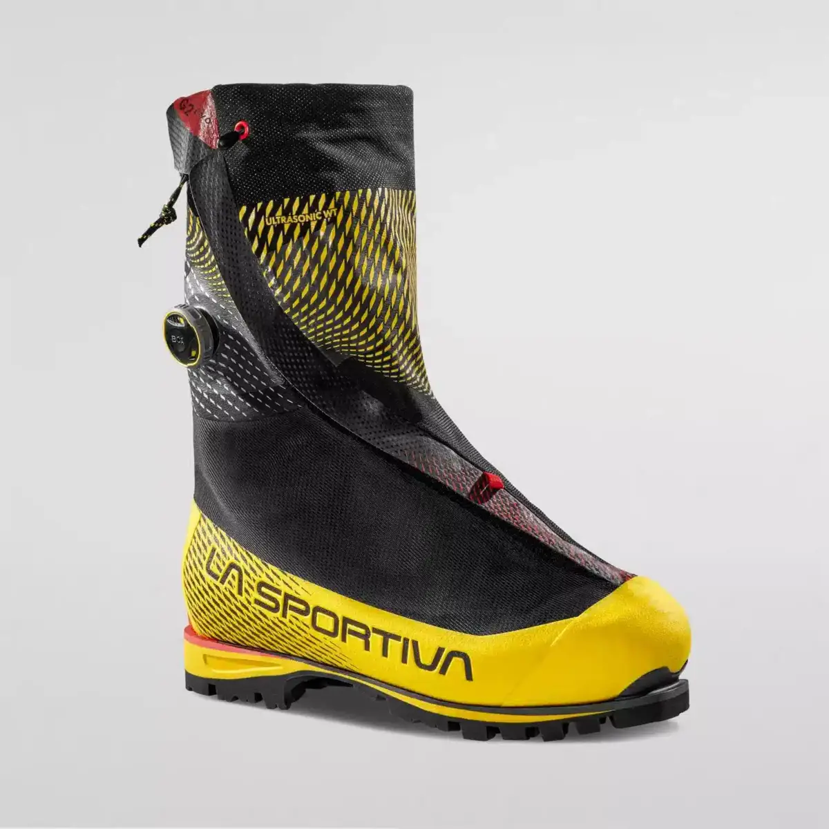 G2 Evo es la bota doble ultratérmica para alpinismo extremo y uso prolongado a bajas temperaturas. Ofrece la máxima repelencia al agua gracias al termosellado interno y a la innovadora tecnología UltraSonic Welding, que permite unir los materiales sin necesidad de costuras, a los materiales externos antideslizantes y al paquete aislante interno de la carcasa. La resistencia a la abrasión está garantizada por el uso de Cordura®. El botín está fabricado con materiales de secado rápido para permitir un uso prolongado en la montaña. El volumen y el peso son extremadamente reducidos gracias a la entresuela Honeycomb Tech en fibra de carbono y a la construcción compacta y de alto rendimiento al estilo tradicional de La Sportiva. La carcasa interior adopta el sistema de cierre rápido BOA® Fit System en una configuración doble que garantiza un ajuste rápido, fácil y preciso y una tensión diferenciada de la carcasa entre la parte superior e inferior. El sistema BOA® Fit System situado en el exterior de la polaina permite ajustar el cierre sin tener que abrir la cremallera de la polaina externa, lo que garantiza el mantenimiento de la temperatura interna y la posibilidad de actuar sobre el sistema de cierre sin quitarse los guantes.