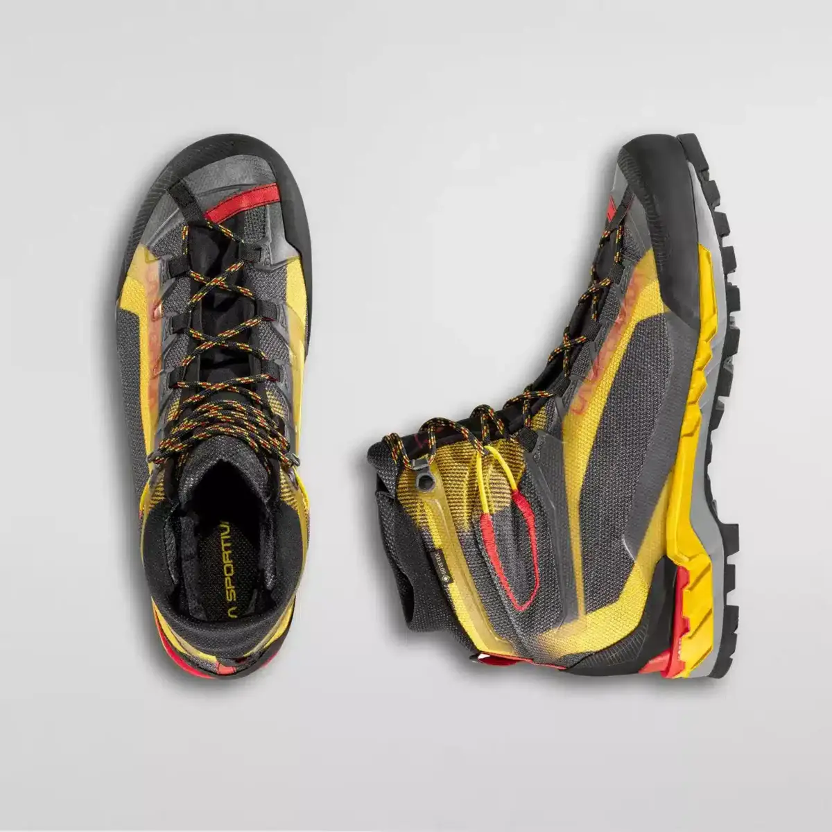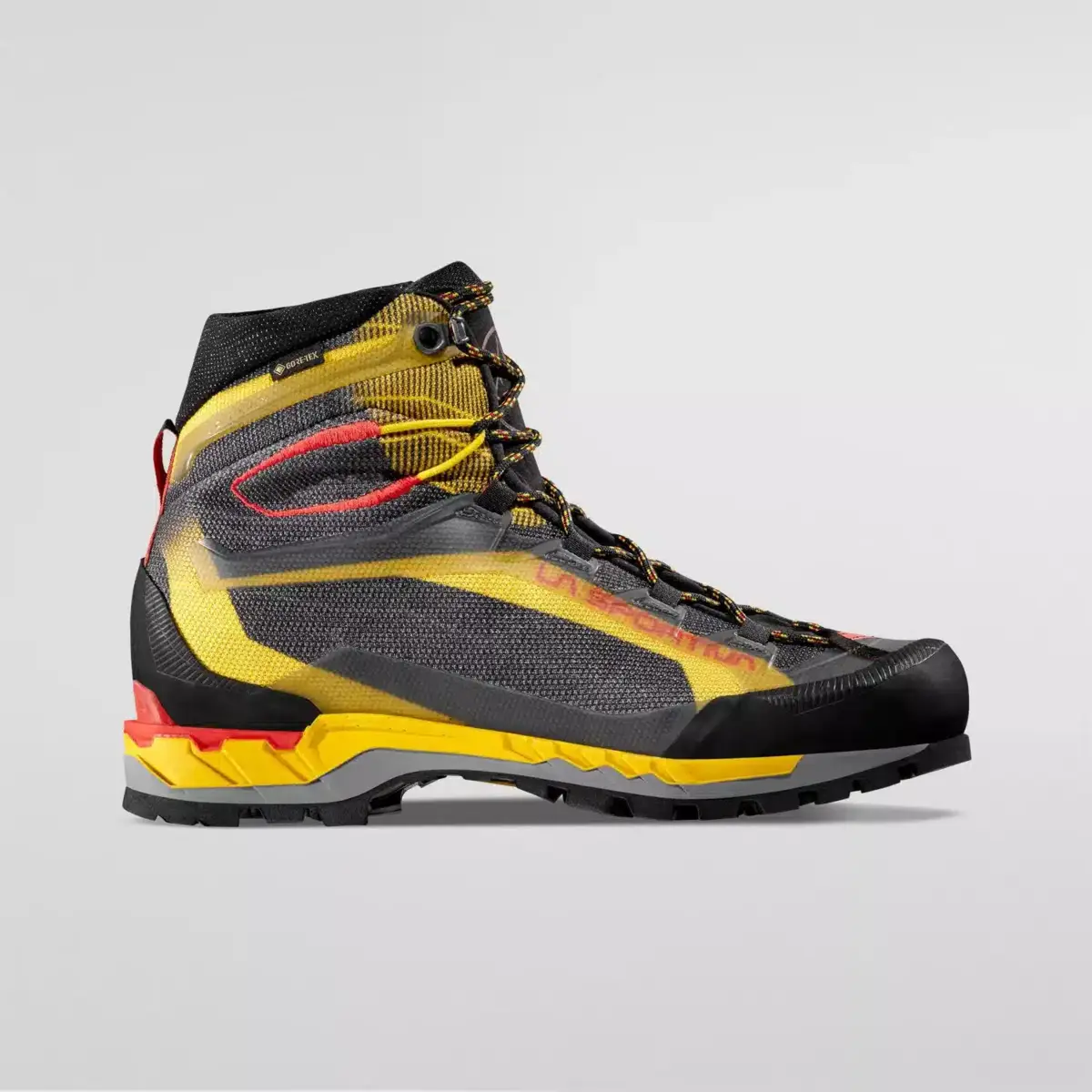 Trango Tech GORE-TEX es una bota ligera y flexible, especialmente indicada para excursiones alpinas, rutas técnicas de aproximación y como bota de trabajo para guías y rescatadores de montaña. La parte superior está fabricada con un tejido resistente a la abrasión con Thermo Tech Injection, unas aplicaciones estructurales especiales en material termoplástico sobreinyectado para minimizar las costuras y reducir el peso al mínimo. El cordón hasta la puntera permite ajustar al máximo el volumen y los ganchos de la lengüeta ayudan a contener aún más el peso. La lengüeta integrada en la parte superior está fabricada con un tejido elástico suave, y su forma ergonómica, con volúmenes externos muy compactos y un ajuste envolvente, hace que el producto sea muy cómodo y adecuado para un uso prolongado. La entresuela antichoque de poliuretano de baja densidad reduce el impacto con el suelo al caminar y mantiene sus características con el paso del tiempo. El sistema 3D Flex facilita la movilidad del tobillo para proporcionar un apoyo preciso en terrenos irregulares, mientras que la suela La Sportiva Cube Sole, fabricada por Vibram con tacos diferenciados, proporciona un excelente apoyo en todo tipo de terrenos. Trango Tech GORE-TEX: la mejor tecnología al servicio del excursionista.