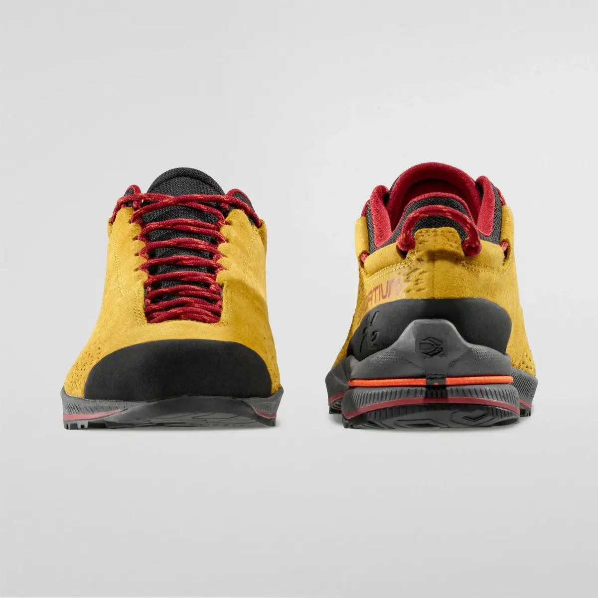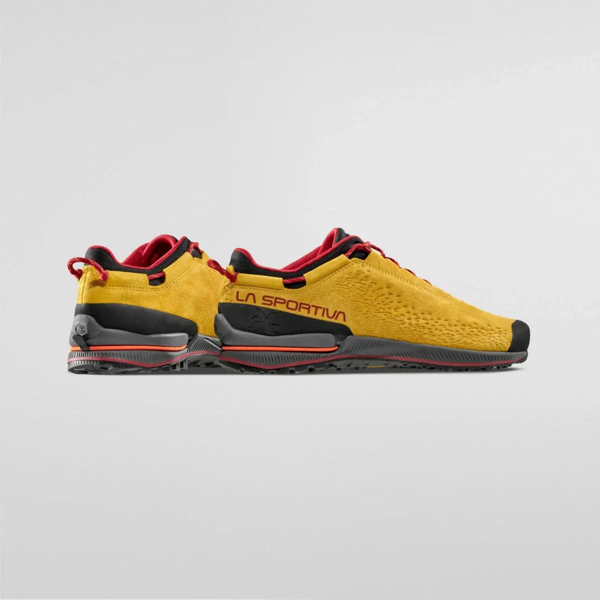 TX2 Evo Leather es el calzado diseñado para el enfoque técnico de la escalada en rocódromo y para su uso en roca, con un ajuste envolvente y la incomparable comodidad de la parte superior de ante. Adopta un paquete de suela con una banda de rodadura 100 % resoleable que duplica su ciclo de vida y utiliza materiales reciclados para un menor impacto medioambiental. La suela está diseñada para un recambio rápido y sencillo, sustituyendo exclusivamente la banda de rodadura en los talleres autorizados por La Sportiva. Respete el medio ambiente gracias a la parte superior de curtido ecológico sin metales, la plantilla Ortholite® Hybrid de material reciclado, la entresuela fabricada en parte con restos de procesamiento y los cordones 100 % reciclados. Suela Vibram® IdroGrip con zona de escalada diseñada para un agarre máximo en terrenos técnicos. TX2 Evo: renueva, reutiliza, resuela.