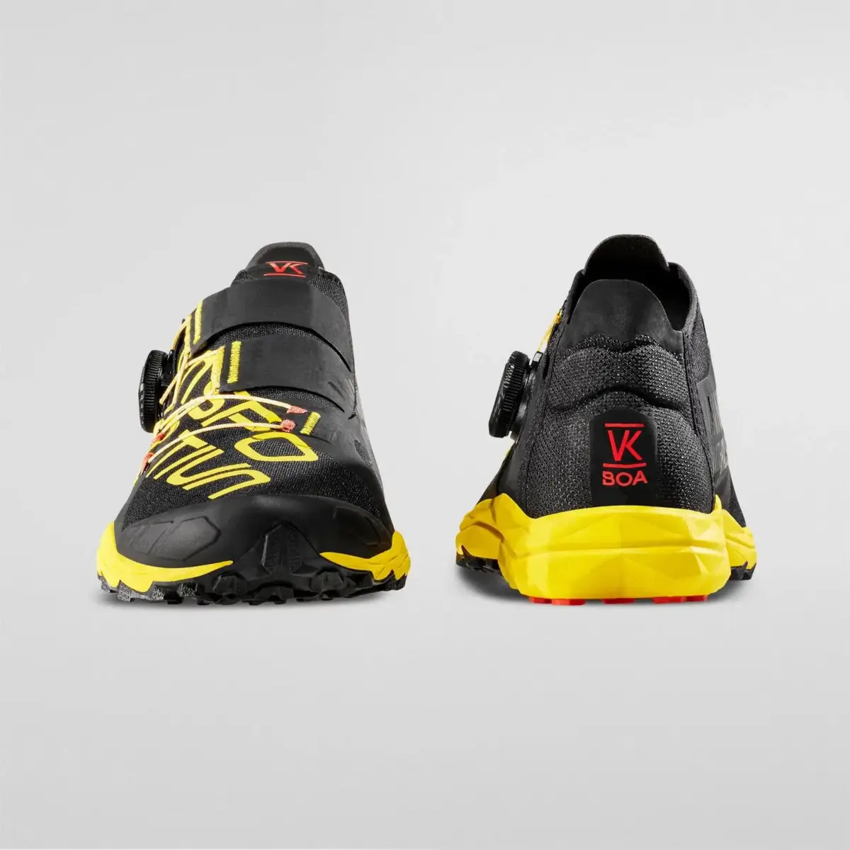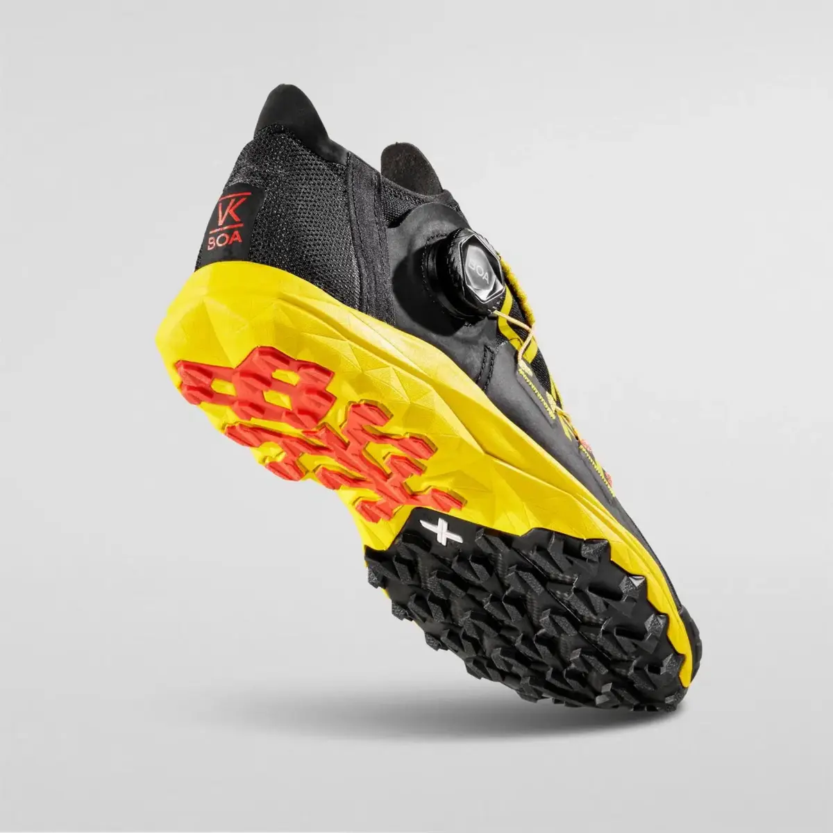 VK BOA es la zapatilla de trail running diseñada para carreras de kilómetro vertical, desarrollada con sprinters récord en esta disciplina y enriquecida con el sistema de cierre rápido BOA™ Fit. El peso y el volumen se han reducido al mínimo para ofrecer el máximo rendimiento en las subidas. Cada detalle ha sido diseñado para reducir el peso al mínimo. Sistema de cordones BOA™ Fit rápido, ágil e intuitivo: permite un cierre perfecto y un ajuste ceñido; las solapas de cierre integran el sistema BOA™ Fit y envuelven el pie a la perfección. La parte superior tipo calcetín está fabricada con malla bielástica para garantizar la libertad de movimiento. El talón 3D proporciona la máxima comodidad y sujeción. La puntera de TPU es ligera y protege contra los golpes. El compuesto superligero FriXion White es una concentración de tecnología con banda de rodadura solo donde es necesario. VK BOA: ¡vaya en vertical!