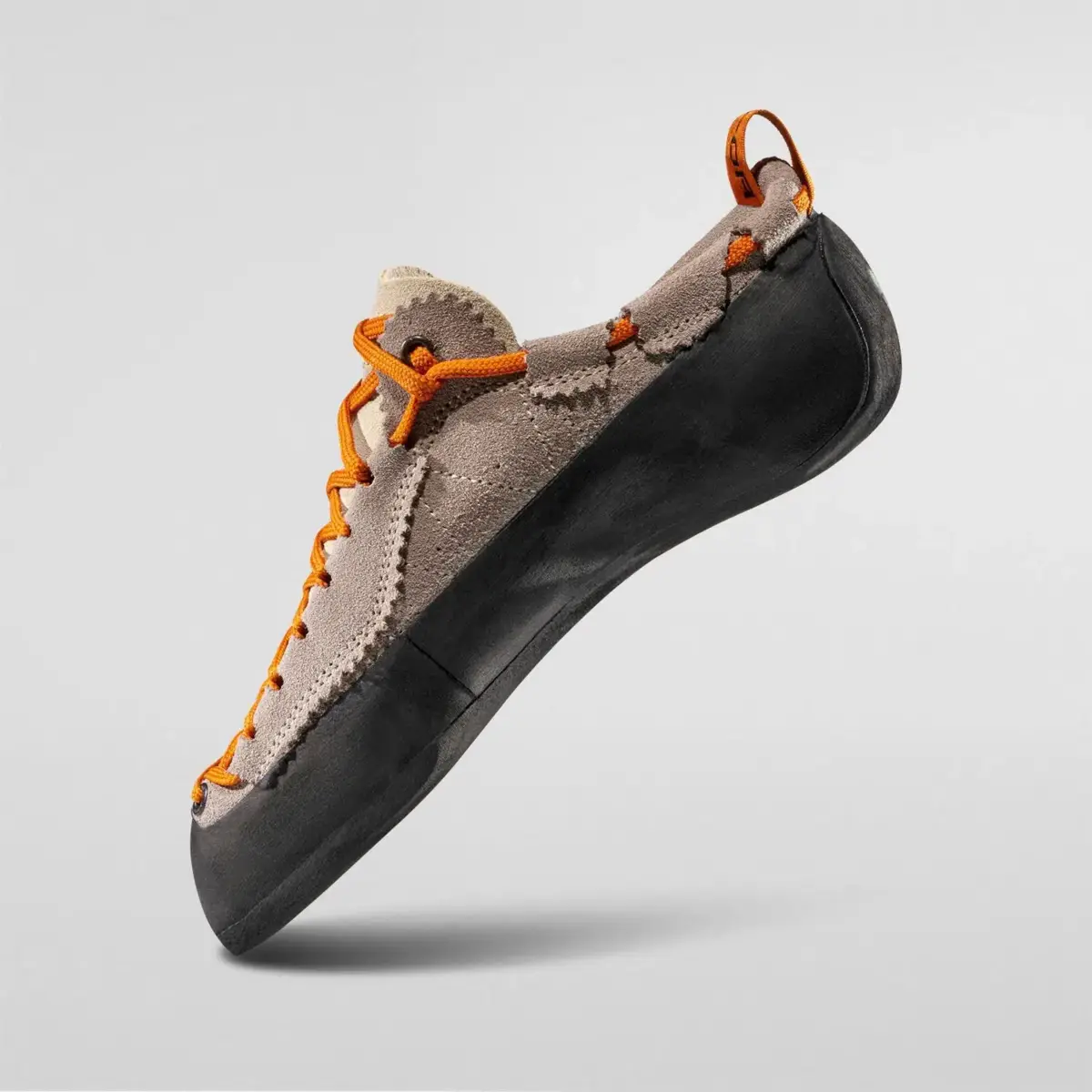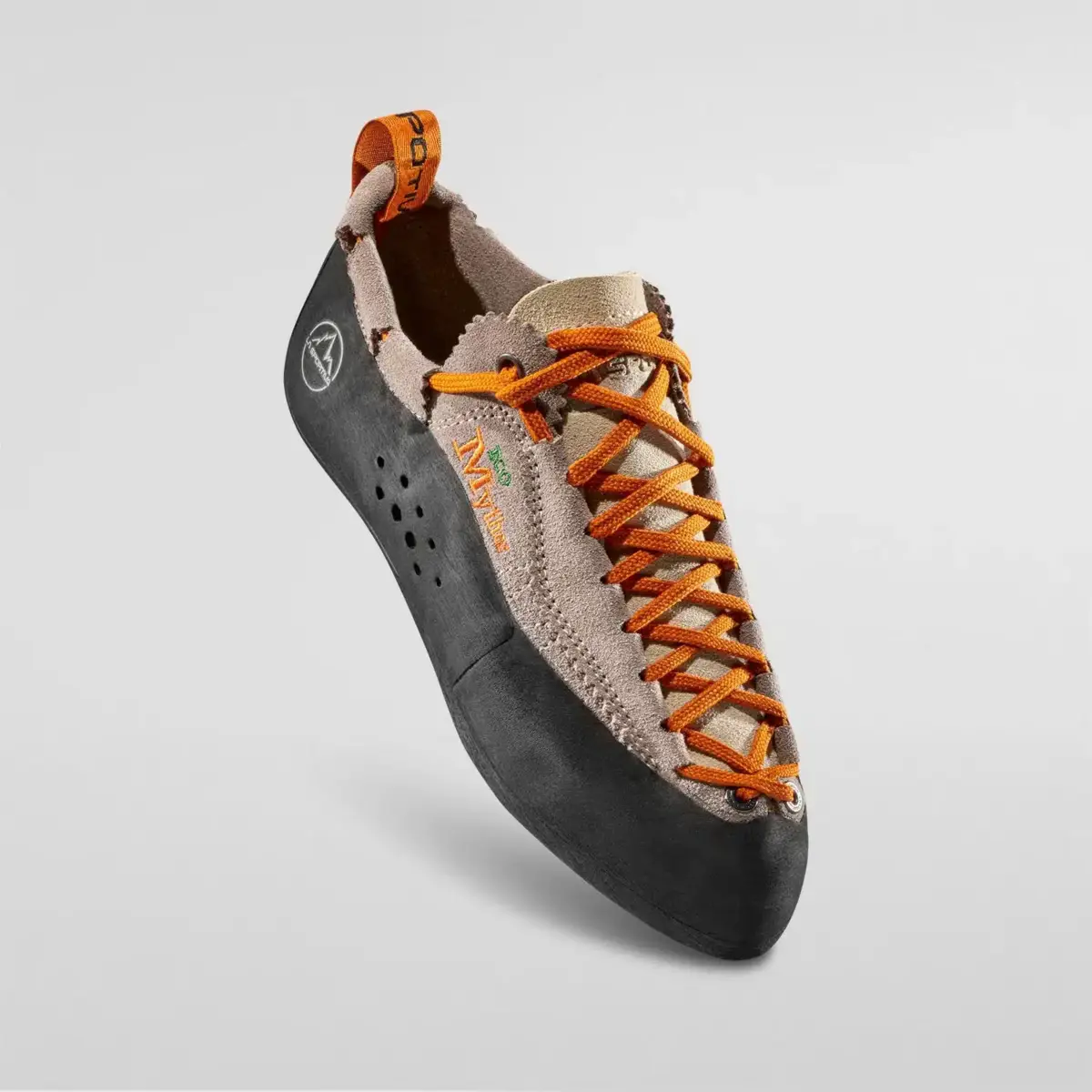 La Mythos es una pieza clave en la historia de la escalada deportiva desde 1991. Esta reedición está fabricada con un compuesto de caucho reciclado procedente de nuestros residuos de producción. El revolucionario sistema de cordones patentado permite ponerse los Mythos Eco de forma rápida y sencilla, garantizando una distribución uniforme de la tensión en todo el pie. Este innovador cierre proporciona una comodidad óptima, adaptándose perfectamente a la forma de cada pie y ofreciendo un apoyo constante durante largas sesiones de escalada.