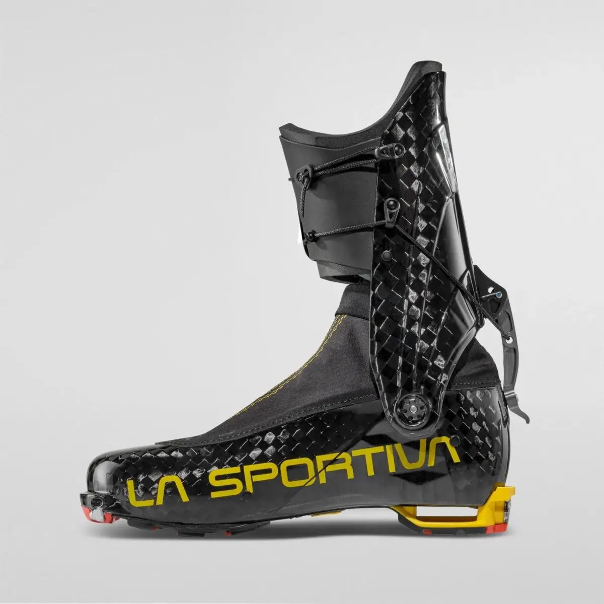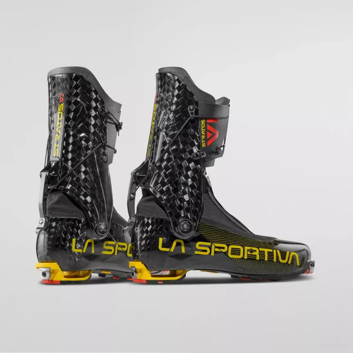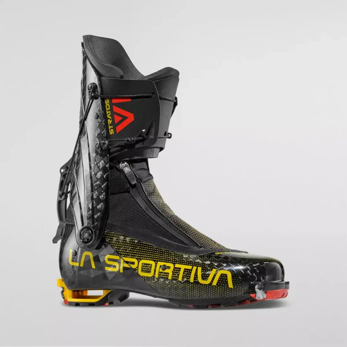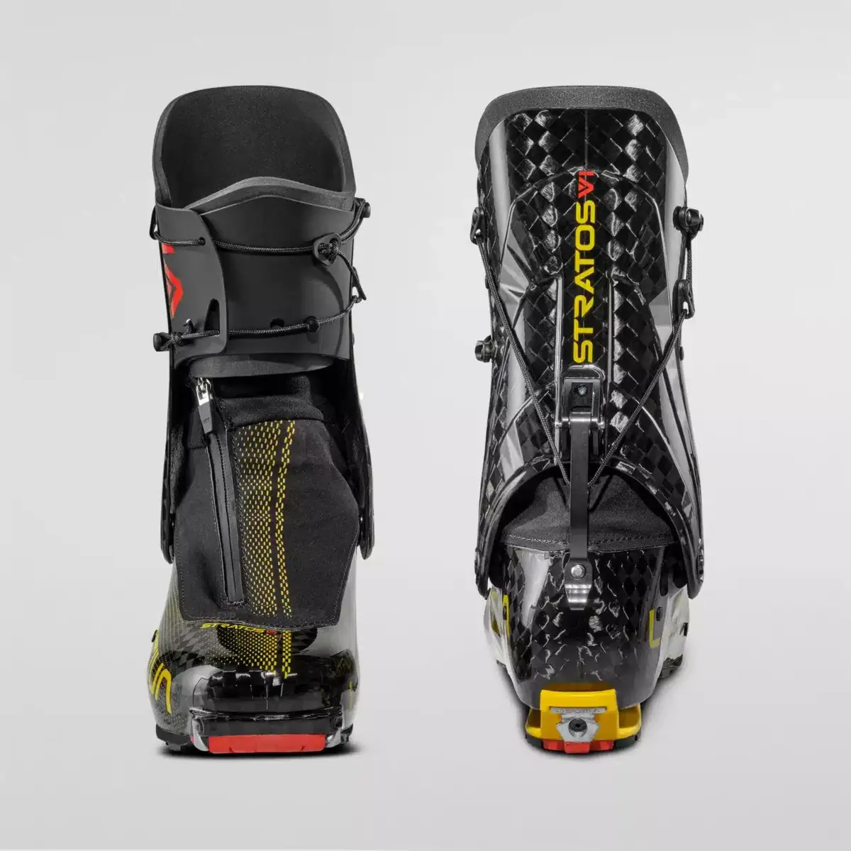 STRATOS VI es la sexta generación de la bota de carbono más famosa de su categoría. Es la bota de esquí de travesía más ligera y avanzada del mercado. La palanca «Stratos Lever» de Ergal permite liberar completamente el guardabuenas de la carcasa, para que pueda realizar tantas excursiones como desee en modo Walk sin ningún tipo de roce. La geometría y la laminación de carbono están diseñadas para reducir al mínimo el peso y el volumen, mientras que la carcasa es extremadamente compacta, lo que permite que el pie trabaje al unísono con la bota para ofrecer el máximo control de los movimientos, una transmisión perfecta de la potencia y una acción directa y precisa sobre el esquí. Cuenta con nervios de refuerzo e inserciones de material a prueba de balas para reducir las vibraciones de la carcasa y crear un esquí de máximo rendimiento, además de mejorar la fiabilidad del producto en las condiciones más duras.La construcción altamente compacta de la Spur Heel Construction™ proporciona una mayor resistencia y deja el talón libre para que sea compatible con todo tipo de crampones. Ahora, la puntera y el talón cumplen con la normativa ISFM. El sistema de fijación trasero del acoplamiento polimérico es de color amarillo característico y protege el casco de los golpes al caminar. STRATOS siempre ha marcado la pauta en su categoría.