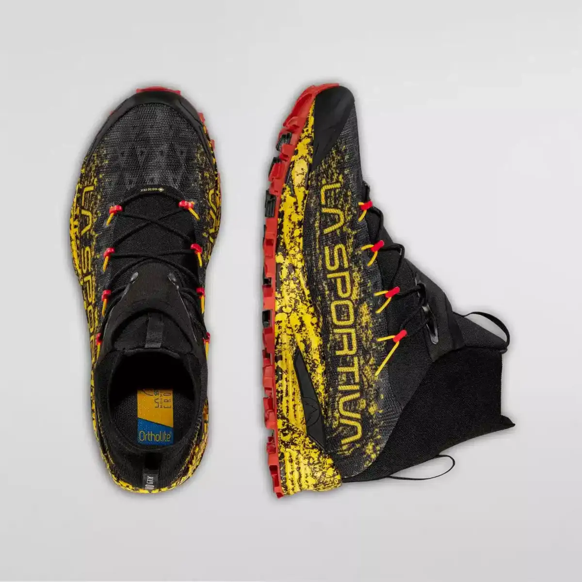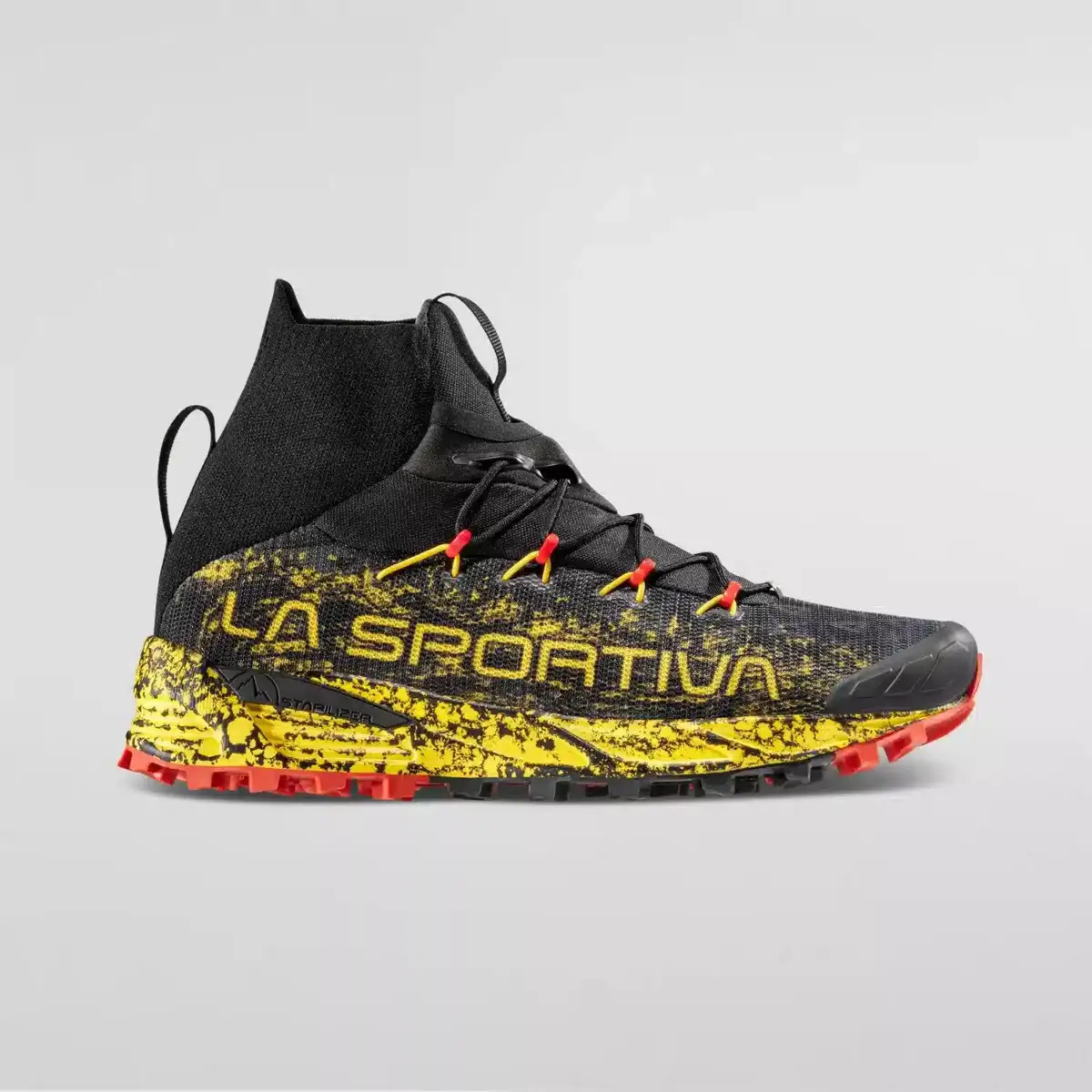 La suela adherente ofrece un excelente agarre en superficies resbaladizas y pedregosas o heladas gracias a los tacos profundos y es compatible con los clavos AT-Grip. La polaina Sock-Shield Gaiter™ protege contra las piedras y el barro, y el sistema Quick-Lace con bolsillos para los cordones hace que el atado sea rápido y fácil. El sistema de cordones está integrado en la parte superior: esta solución permite regular el volumen y el ajuste para proporcionar un apoyo más preciso y estable en las rutas transversales. La construcción sin costuras y la membrana superflexible de GORE-TEX impermeable y transpirable hacen de Uragano la zapatilla de running de invierno perfecta para los corredores todoterreno que compiten en carreras de trail en invierno.