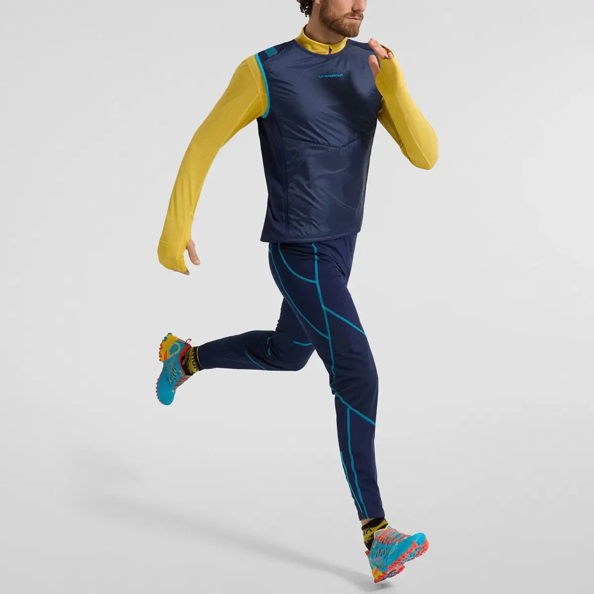 Innovador chaleco desarrollado para correr en invierno en los días más fríos. Su diseño sin cremallera y la colocación de los tejidos según la anatomía del cuerpo lo convierten en una prenda térmica, elástica y transpirable. La malla tridimensional utilizada en los paneles delantero y trasero transporta la humedad al exterior mientras mantiene el calor corporal. En combinación con su capa base favorita, forma una barrera perfecta contra el viento frío y le permite correr incluso en invierno.