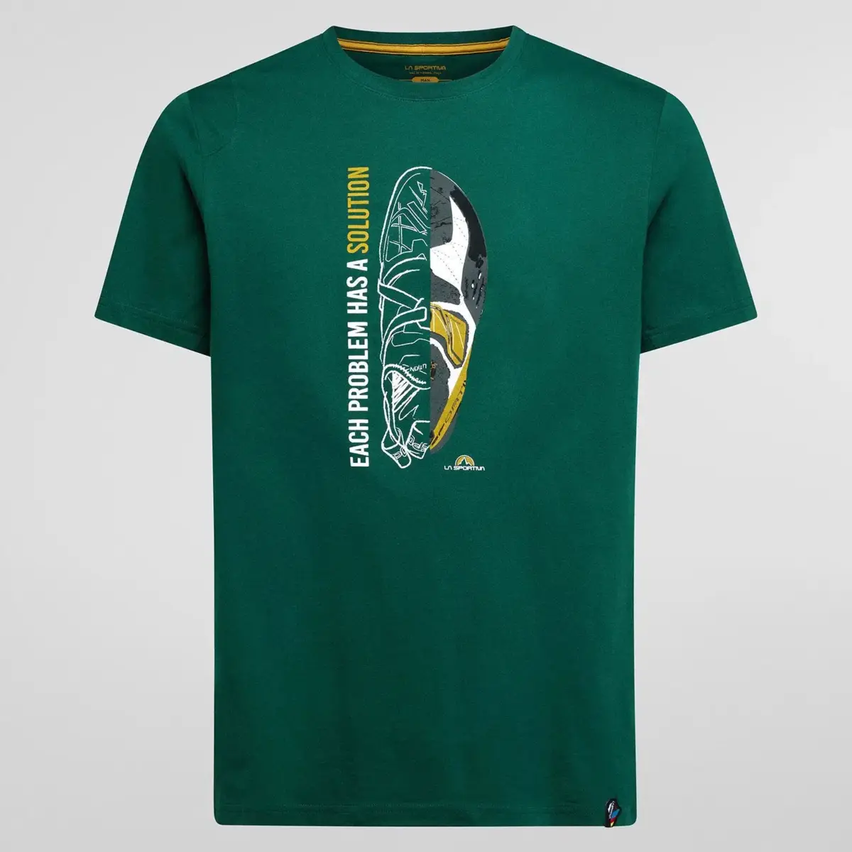 Camiseta de algodón orgánico diseñada para todos los escaladores que se han rendido a nuestras icónicas zapatillas de escalada Solution.