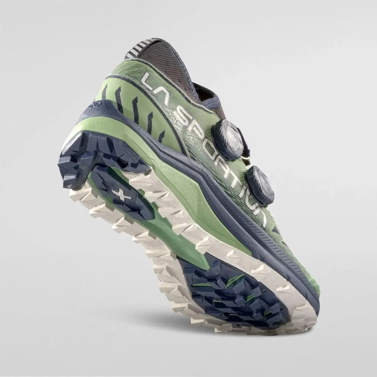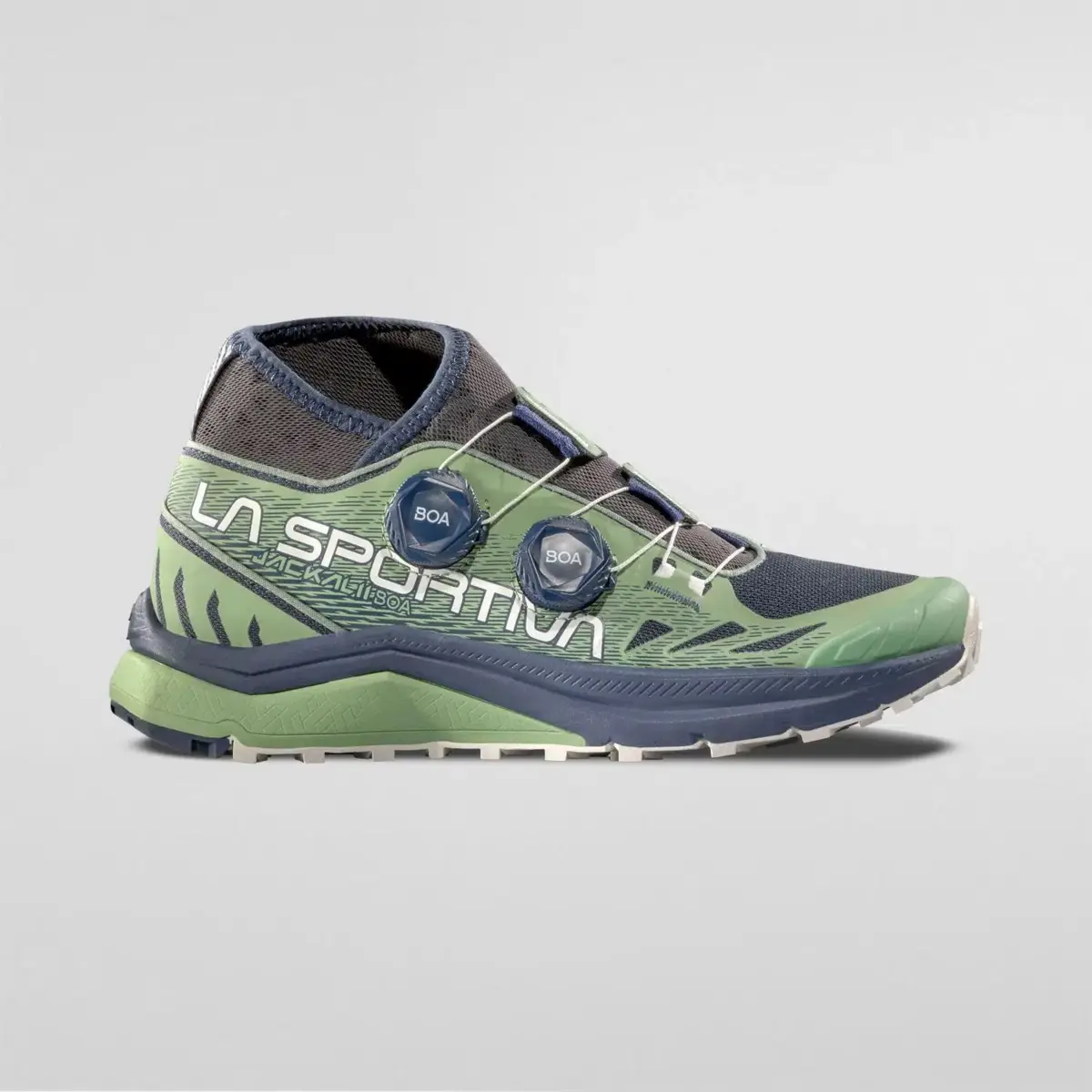 Las La Sportiva Jackal II BOA son unas zapatillas de montaña de alto rendimiento para distancias ultralargas. Cuentan con el sistema PerformFit™ Wrap, probado científicamente y desarrollado por BOA® Fit System, para un ajuste rápido, preciso y sin esfuerzo. Dos diales BOA® en la parte superior protectora, en combinación con una doble solapa de cierre de microfibra de tres capas, garantizan un ajuste perfecto en todas las zonas del pie para una sujeción máxima del talón. Esto aumenta la estabilidad y reduce el impacto al aterrizar en las secciones más técnicas de una ultramaratón.
