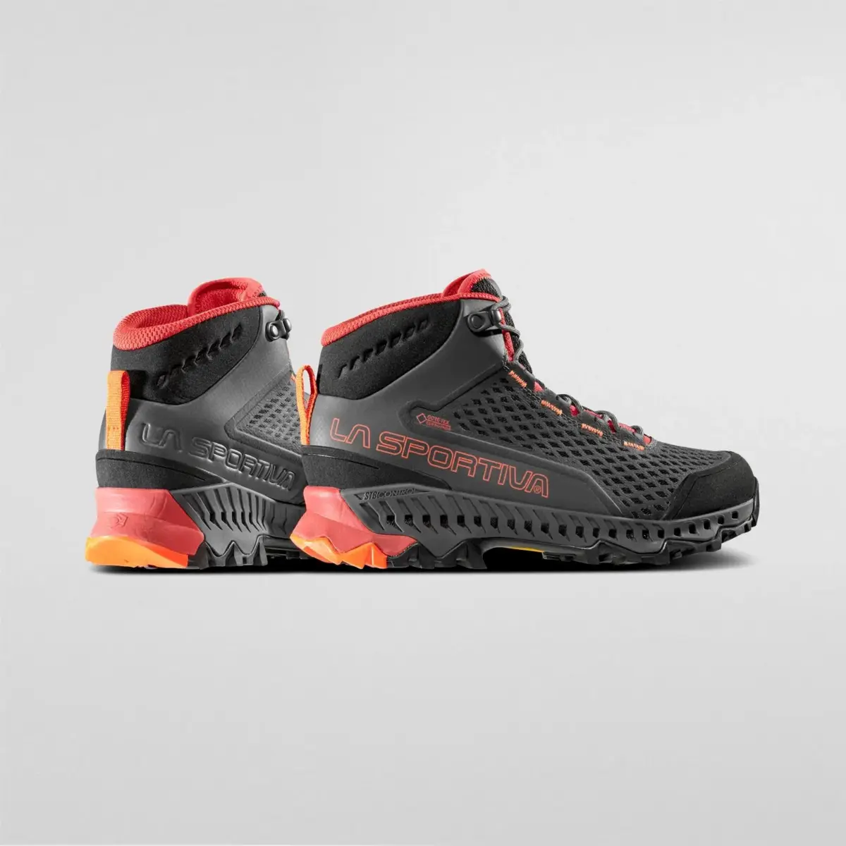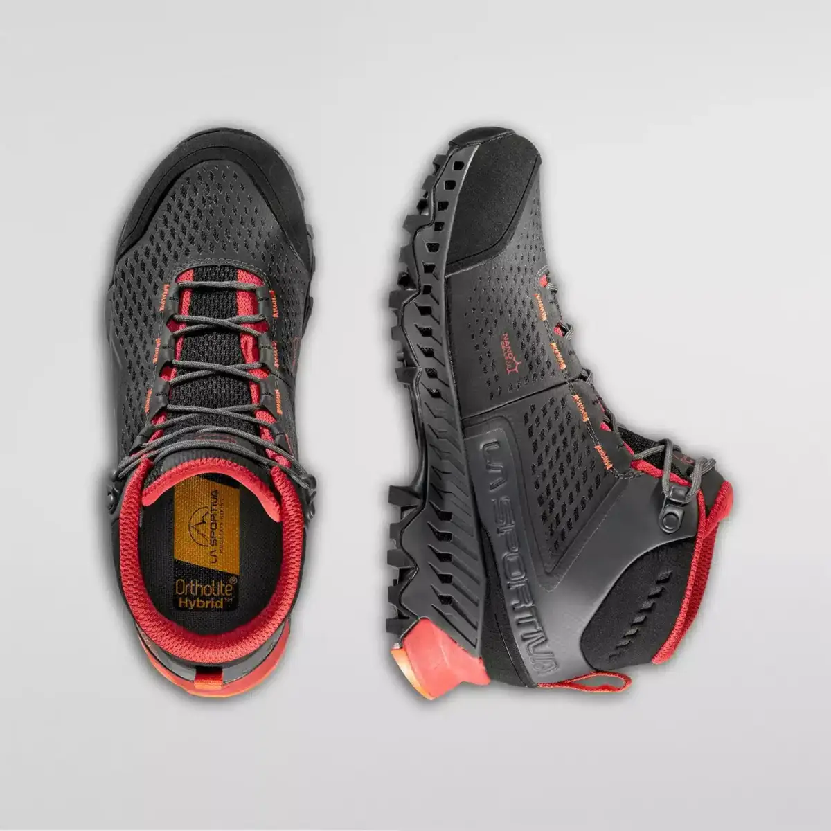 Stream es una bota de senderismo de corte medio y rápido para una nueva generación de senderistas. Adopta soluciones que forman parte del ADN de montaña de La Sportiva, combinando las tecnologías y conceptos derivados de las categorías Mountain Running y Mountain para crear un calzado versátil, impermeable y transpirable en 360° gracias a la nueva tecnología GORE-TEX SURROUND®: la membrana exclusiva que garantiza una transpirabilidad en 360° gracias a la mayor superficie de aireación que comprende la parte superior, la plantilla y la entresuela de EVA con salidas de ventilación laterales en TPU. Los canales de aireación visibles a lo largo del perfil de la entresuela están protegidos por una malla de nailon extremadamente resistente, que evita que las piedras y otras impurezas entren en las salidas de ventilación. La parte superior de corte medio utiliza la estructura Nano-Cells 2.0™, unas células supertranspirables que actúan en sinergia con la membrana GORE-TEX SURROUND® para proporcionar unos niveles de transpirabilidad sin precedentes. La parte inferior de la bota incorpora el Stability Control System™, un sistema de control de la estabilidad que integra las salidas de ventilación con la tecnología GORE-TEX SURROUND®. La suela Vibram XS Trek proporciona un excelente agarre en terrenos duros, blandos y fangosos. Se garantiza una transpirabilidad y comodidad totales.