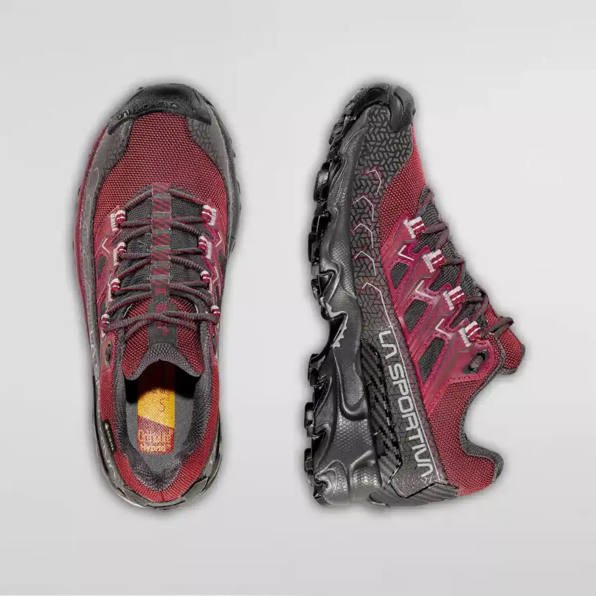 Versión femenina de la reedición estética del famoso modelo Ultra Raptor, calzado de montaña con membrana Gore-Tex® Extended Comfort, desarrollado para recorridos todoterreno de larga distancia, incluso en los meses de invierno. El forro de membrana Gore-Tex® permite que el sudor salga, pero no que entre el agua, lo que lo hace ideal para correr en invierno. El talón estabilizador trasero permite un control perfecto en los travesaños. El sistema de cordones está integrado en la parte superior mediante presillas cosidas en el tejido elástico interno y refuerzos de alta frecuencia en la malla externa: este sistema permite distribuir la tensión de los cordones por toda la parte superior y envolver el pie de la mejor manera posible para una comodidad perfecta. Ultra Raptor II GTX® también está disponible en una versión cómoda de horma ancha dedicada a los excursionistas con pies anchos. El resultado es un calzado técnico y ligero que se puede llevar durante muchas horas consecutivas y es adecuado para su uso todoterreno en cualquier tipo de terreno. Raptorízate, otra vez.